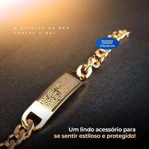 Pulseira Masculino Pingente Pai Nosso Aço Inox Dourado. Pulseira masculina em aço inox dourado com pingente do Pai Nosso gravado a laser. Feita com materiais de alta qualidade, possui elos bem alinhados e um design elegante. Comprimento de 21 cm e largura de 12 mm, é uma peça versátil que combina com diferentes estilos e ocasiões. Ideal para expressar a fé de forma discreta e sofisticada. Um presente especial para diversas ocasiões. Garantia de 3 meses. Adquira agora mesmo essa pulseira cheia de estilo e significado. Ean: 7895185561704