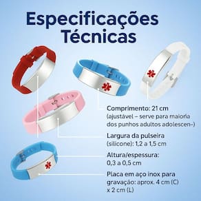 Pulseira Médica De Identificação Personalizada Escolha Cor: Cor: Vermelho Descrição: Pulseira de Identificação Personalizável em Aço Inoxidável - Para Idosos, Crianças, Esportistas e Condições Especiais Segurança, tranquilidade e cuidado em todos os momentos. Essa pulseira de identificação foi desenvolvida especialmente para oferecer proteção e praticidade em situações de emergência, sendo ideal para crianças, idosos, pessoas com , Alzheimer, doenças crônicas ou que praticam esportes sozinhos. Fabricada em aço inoxidável de alta qualidade, é resistente, hipoalergênica livre de níquel e Cinza , confortável para o uso diário e permite personalização com informações importantes de contato ou saúde. Personalizamos para você Gravação personalizada sem custo adicional. Use para indicar dados médicos essenciais, alergias, tipo sanguíneo, nome, telefone de emergência e muito mais. .Material: Aço inoxidável livre de níquel e Cinza .Anti-alérgica, resistente à ferrugem, manchas e corrosão .Gravação: Até 4 linhas com até 23 caracteres cada .Indicado para: Crianças, idosos, esportistas, pessoas com , Alzheimer, alergias ou condições médicas específicas Cores disponiveis: Branco Azul Rosa Vermelho - Como Personalizar: Após concluir sua compra, envie uma mensagem com: .O texto desejado para gravação nome, contato, alergias, doenças, etc. .O estilo de fonte preferido podemos enviar sugestões .Caso deseje gravação frente e verso, nos avise para orçamento adicional - Enviamos uma prévia da personalização para sua aprovação antes da produção. Exemplos de uso: .Crianças: número dos pais ou responsáveis .Idosos: doenças pré-existentes, tipo sanguíneo, alergias a medicamentos .Esportistas: contato de emergência em caso de acidentes ./alzheimer: nome e informações de contato em caso de desorientação Observações importantes: Prazo de entrega: O envio é feito em até 2 após a confirmação do pedido e recebimento dos dados para personalização.