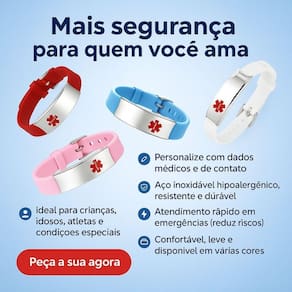 Pulseira Médica De Identificação Personalizada Escolha Cor: Cor: Branco Descrição: Pulseira de Identificação Personalizável em Aço Inoxidável - Para Idosos, Crianças, Esportistas e Condições Especiais Segurança, tranquilidade e cuidado em todos os momentos. Essa pulseira de identificação foi desenvolvida especialmente para oferecer proteção e praticidade em situações de emergência, sendo ideal para crianças, idosos, pessoas com , Alzheimer, doenças crônicas ou que praticam esportes sozinhos. Fabricada em aço inoxidável de alta qualidade, é resistente, hipoalergênica livre de níquel e Cinza , confortável para o uso diário e permite personalização com informações importantes de contato ou saúde. Personalizamos para você Gravação personalizada sem custo adicional. Use para indicar dados médicos essenciais, alergias, tipo sanguíneo, nome, telefone de emergência e muito mais. .Material: Aço inoxidável livre de níquel e Cinza .Anti-alérgica, resistente à ferrugem, manchas e corrosão .Gravação: Até 4 linhas com até 23 caracteres cada .Indicado para: Crianças, idosos, esportistas, pessoas com , Alzheimer, alergias ou condições médicas específicas Cores disponiveis: Branco Azul Rosa Vermelho - Como Personalizar: Após concluir sua compra, envie uma mensagem com: .O texto desejado para gravação nome, contato, alergias, doenças, etc. .O estilo de fonte preferido podemos enviar sugestões .Caso deseje gravação frente e verso, nos avise para orçamento adicional - Enviamos uma prévia da personalização para sua aprovação antes da produção. Exemplos de uso: .Crianças: número dos pais ou responsáveis .Idosos: doenças pré-existentes, tipo sanguíneo, alergias a medicamentos .Esportistas: contato de emergência em caso de acidentes ./alzheimer: nome e informações de contato em caso de desorientação Observações importantes: Prazo de entrega: O envio é feito em até 2 após a confirmação do pedido e recebimento dos dados para personalização.