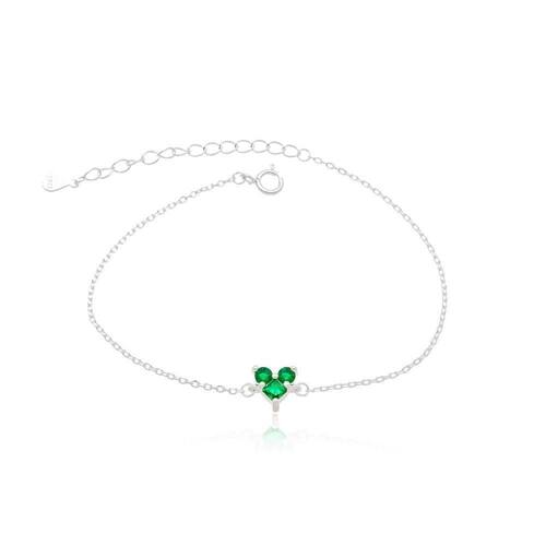 Pulseira Minimalista Três pontos de Luz Prata 925 Verde - Pulseira Minimalista Três pontos de Luz Prata 925