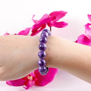 Tamanho: Diâmetro do cordão 12 mm Material: contas de charoite Miçangas premium de charoite — Feitas com gemas naturais de Charoite de 12 mm, cada pérola apresenta tons profundos de roxo imperador com veias ricas e giratórias em forma de dragão para uma aparência impressionante e real. Inspirado em Nine Purple Fire — Projetado em alinhamento com os princípios, simbolizando renovação, transformação e fortuna ascendente, ideal para o alinhamento da energia espiritual. Superfície altamente polida — Cada pedra é finamente polida para aprimorar os padrões naturais e produzir um acabamento lustroso e suave que é visualmente luxuoso e tátil. Design elástico para fácil ajuste — A faixa elástica garante conforto e flexibilidade para a maioria dos tamanhos de pulso, adequada para uso diário, meditação ou momentos espirituais significativos. Acessório elegante para mulheres — Uma peça ousada que se destaca em roupas casuais e semiformais, expressando elegância e força interior com um toque místico e luxuoso.