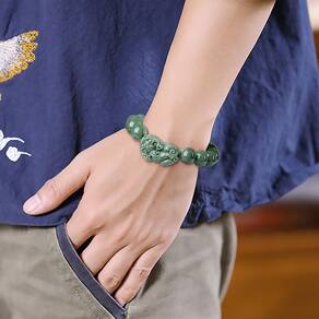 Tamanho: Diâmetro do talão 13 mm, 13 peças, Brave Troops 20,5 x 34 x 12,4 mm Peso: 65 g Material: jadeíta Artesanato autêntico de jadeíta — Feita de jadeíta genuína de grau A em um rico tom verde-feijão, esta pulseira apresenta translucidez gelada e polimento suave para uma aparência refinada. Design simbólico de bravas tropas — apresenta um pingente de Pi Xiu (Brave Troops) esculpido à mão, conhecido na cultura tradicional por simbolizar a atração da fortuna e afastar a negatividade. Estrutura de miçangas confortável — composta por 13 contas redondas de jadeíte de 13 mm, amarradas em um cordão elástico para facilitar o uso diário sem comprometer o estilo ou a durabilidade. Unissex e versátil — A cor robusta e o entalhe arrojado tornam esta pulseira adequada para homens e mulheres, perfeita para ocasiões casuais, espirituais ou culturais. Acessório cultural poderoso — ideal para equilíbrio espiritual, aprimoramento da energia pessoal ou uso como peça simbólica que reflete força e prosperidade.