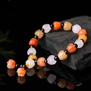 Peso: 27 g Material: Jinsi YuMaterial natural de Jinsi Yu — Feito com o autêntico Jinsi Yu, com uma mistura de miçangas de jade Gobi amarelas, brancas, laranja e rosa com polimento suave. Miçangas inspiradas em abóbora — Cada miçanga é esculpida em uma forma delicada de abóbora, adicionando um toque simbólico de colheita e abundância ao design. Aparência étnica clássica — incorpora elementos de design chinês tradicional em uma estrutura elástica moderna, adequada para roupas de inspiração vintage. Detalhes feitos à mão — Finalizados com pequenos pingentes pendentes que realçam o interesse visual e o movimento da pulseira. Confortável para uso diário — Leve, com apenas 27 g, e o ajuste flexível o tornam ideal para uso regular, ocasiões casuais ou destaques culturais da moda.