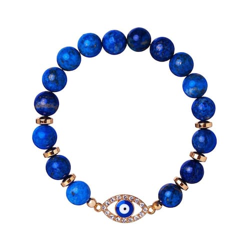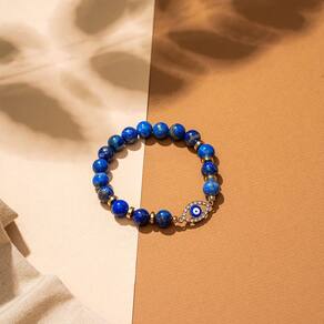 Tamanho: Diâmetro do cordão: 8 mm Material: miçangas de lápis-lazúli GemPremium — Feitas com miçangas de pedras preciosas naturais polidas de 8 mm com tons de azul profundo e texturas minerais sutis para uma aparência refinada e espiritual. Peça central Evil Eye — Decorada com um pingente clássico Evil Eye cercado por strass cintilantes, simbolizando proteção e afastando a energia negativa. Design elástico — O cordão elástico garante um ajuste confortável e ajustável para a maioria dos tamanhos de pulso, fácil de usar e remover sem fechos ou fivelas. Elegantes detalhes em dourado — Inclui espaçadores dourados que adicionam contraste e equilíbrio à pulseira, aprimorando seu apelo moderno e moderno. Joias espirituais versáteis — ideais para uso diário, ioga, meditação ou acessórios significativos para quem busca equilíbrio, foco e alinhamento energético.
