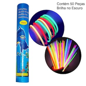 Pulseira Neon Colorida Brilha no Escuro Fluorescente Festa Balada - Tubo com 50 Peças.