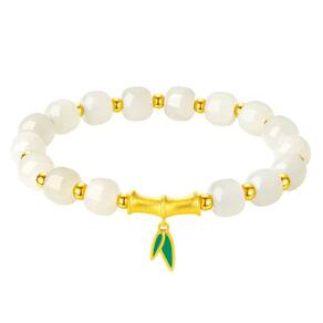 Tamanho: Diâmetro do cordão 6x7 mm Peso: 11g Material: Nefrite Natural Hetian Jade Beads — Feitos com jade de nefrite premium em formas redondas irregulares de 6x7 mm, com um tom suave e elegante que complementa a estética feminina. Detalhe de bambu em prata esterlina — O pingente central em forma de bambu é feito de prata S925 com revestimento de ouro, simbolizando força e elegância na cultura chinesa. Acento em folha de esmalte verde — Um delicado pendente de folha verde adiciona movimento e detalhes vibrantes, aprimorando a estética geral e dando à peça um caráter animado. Ajuste leve e confortável — Projetada para mulheres, esta pulseira de 11 g oferece um toque equilibrado e um ajuste elástico flexível, adequado para uso prolongado. Design artístico e minimalista — combina elementos tradicionais chineses com o minimalismo moderno, tornando-o perfeito para roupas diárias, eventos culturais ou ocasiões refinadas.