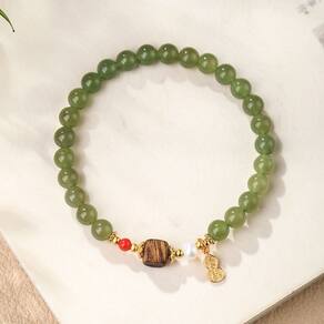Tamanho: Diâmetro do cordão 6 mm Material: Nefrite Natural Nephrite Jade Beads — Apresenta contas de jade verde lisas de 6 mm, conhecidas por suas propriedades calmantes e elegância atemporal, perfeitas para uso espiritual e diário. Combinação exclusiva de materiais — Inclui elementos de madeira de ágar, pérola e detalhes dourados, adicionando profundidade e textura e aprimorando o charme tradicional da pulseira. Amuleto simbólico de cabaça — Adornado com uma pequena cabaça dourada, que simboliza riqueza e bênçãos na cultura chinesa, acrescentando significado ao design. Design elegante de fusão étnica — Esta pulseira combina motivos culturais chineses com estética contemporânea, ideal para mulheres que buscam herança e tendências. Ajuste elástico durável — Projetado com um cordão elástico de alta qualidade para facilitar o uso e um ajuste seguro e flexível ao redor do pulso, adequado para a maioria dos tamanhos de pulso.