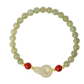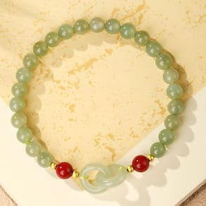 Tamanho: Diâmetro do cordão: 6 mm Material: Nefrite Natural Nefrite Jade Grânulos — Feitos de grânulos de jade nefrita autênticos de 6 mm, polidos até um acabamento liso com um tom verde sereno, ideais para uso diário. Design exclusivo de anel entrelaçado — apresenta uma peça central de anel duplo esculpida que simboliza unidade e continuidade, combinando tradição com minimalismo moderno. Miçangas vermelhas para vitalidade — aprimoradas com duas contas vermelhas ousadas flanqueando os anéis de jade, adicionando contraste e simbolizando energia, boa sorte e harmonia. Ajuste elástico — Feito com cordão elástico de alta qualidade para fácil uso e ajuste seguro, adequado para a maioria dos tamanhos de pulso sem desconforto. Estilo minimalista e refinado — Uma pulseira leve e visualmente equilibrada que combina bem com temas de moda étnicos, casuais ou espirituais.