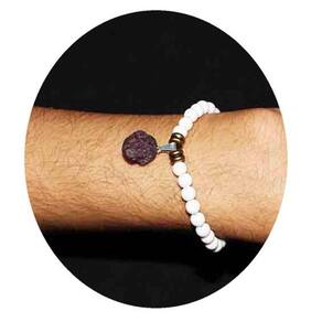 Contém Uma Pulseira Nlux Masculina com Purpurita de verdade (100% Natural), miçangas pretas e metal estiloso em contato com a Purpurita.