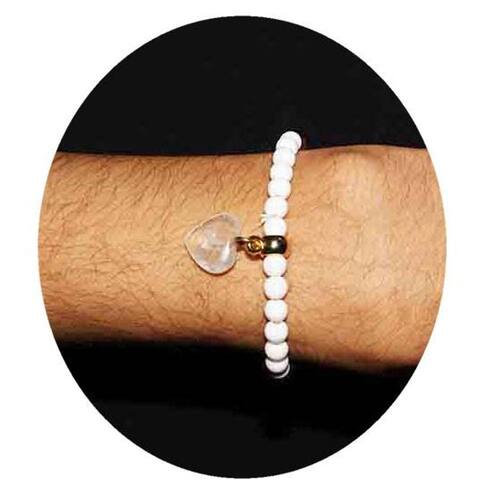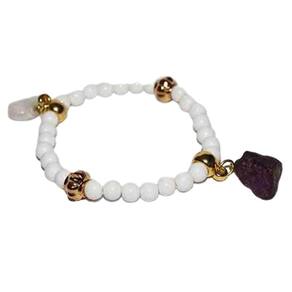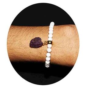 Contém Uma Pulseira Nlux com Purpurita de verdade (100% Natural) com um delicado coração de cristal no lado oposto à purpurita, miçangas Brancas e metal estiloso em contato com a Purpurita.