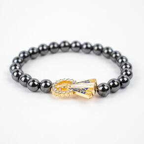 Material: Hematita, Metal e Silicone Ajustável Pulseira ajustável, tamanho único para adultos Diâmetro do Hematita: 8mm
