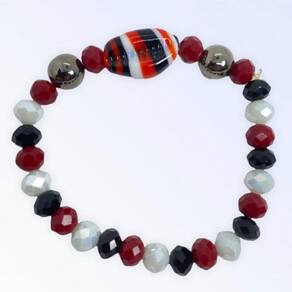 Pulseira obaluae preta, vermelha e branca de cristal e com búzios e silicone