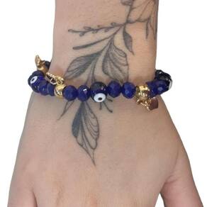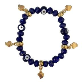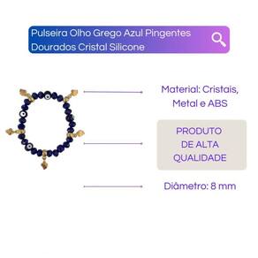 Pulseira Olho Grego Azul Pingentes Dourados Cristal Silicone