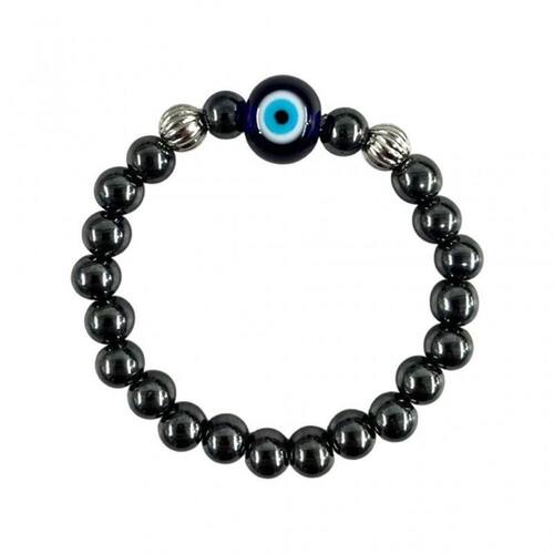 Pulseira Olho Grego Proteção Cor: Azul e Hematita Pulseira Olho Grego Azul Cristal 8 mm para Proteção