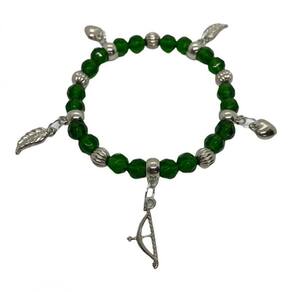 Pulseira oxossi verde penduricalhos cristal e silicone