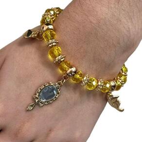 Pulseira Oxum Abebê Umbanda Cristal Dourado e Silicone Esta linda Pulseira de fabricação da Lua Mística é confeccionada artesanalmente com cristais e elástico de Silicone, o que lhe confere durabilidade, resistência, conforto e beleza.x000dÉ adequada para usar em qualquer ocasião, com design elegante.x000d x000dExcelente para presentear, cheio de amor, carregando promessa e confiança, expressando bênçãos, Proteção, sorte e apreciação.x000dÉ um excelente presente para aniversários, graduações ou apenas ofertar a sorte àqueles que ama. Cristais: 8 mm Gênero: Unissex Peso: 30 gramasx000D x000dCuidados com seu acessório:Gratidão e Sucessox000DImagens meramente ilustrativasx000DTire todas as suas Dúvidas antes de concluir a compra. Iremos responder o mais breve possível.x000dEmbalagem de Envio:x000DCaixa de papelão ondulado, plástico bolha, conforme necessidade do produto.x000dRespostas das dúvidas mais frequentes na ordem:x000DR1: Já realizamos milhares de entregas em todo o Brasil, somos especialistas no que fazemos.x000dR2: Assim que seu pedido for despachado, esta plataforma envia para você o código de rastreamento.x000dR3: Enviamos o produto 100% inspecionado e conferido em nosso checkout e São embalados em embalagem de papelão e plástico bolha.x000dR5: Iremos despachar o seu produto o mais rápido possível, assim que for confirmado pela plataforma, enviamos em até 24h.x000dR6: Nós queremos a sua satisfação, qualquer problema iremos te auxiliar em nossos canais de comunicações. Marca: Lua Mística - 100% Original - Loja Oficial