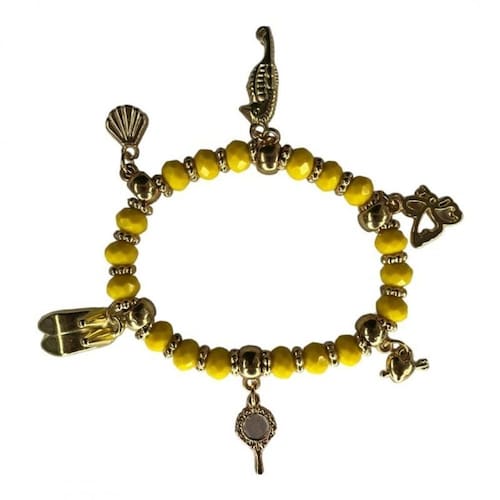 Pulseira oxum amarelo gema penduricalhos cristal e silicone