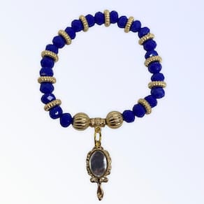 Pulseira oxum azul com abebê dourado cristal e silicone Esta linda pulseira de fabricação da lua mística é confeccionada artesanalmente com cristais, pedras e elástico de silicone, o que lhe confere durabilidade, resistência, conforto e beleza.É adequada para usar em qualquer ocasião, com design elegante.Excelente para presentear, cheio de amor, carregando promessa e confiança, expressando bênçãos, proteção, sorte e apreciação.É um excelente presente para aniversários, graduações ou apenas ofertar a sorte àqueles que ama.Mude hoje mesmo o seu destinoCaracterísticas técnicas: Pulseira unisex Pedras e cristais: 8 mm Gênero: masculino/feminino Peso: 30 gramascuidados com seu acessório: Evite atrito entre as peças para não comprometer o visual. Cremes corporais, perfumes e óleos podem danificar seus acessórios. Utilize flanela macia e seca para limpeza de sua pulseira. Com esses cuidados sua peça terá uma maior vida útil.Gratidão e sucesso Marca: Lua Mística - 100% Original - Loja Oficial