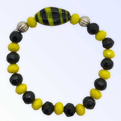 Pulseira Oxumare Búzios Preto e Amarelo Cristal e Silicone