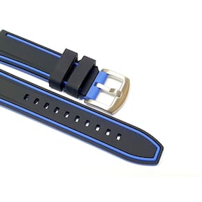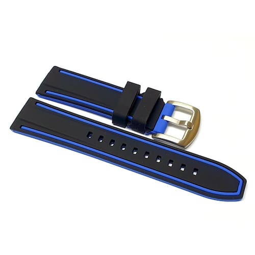 Pulseira para Relógio de Pulso Borracha 22mm Preta com Azul Modelo: Reta Material: Borracha/Silicone Cor: Preto com Detalhe Azul Medidas: Comprimento: 21cm Largura: 2.20cm Largura Batente: 2.2 cm Características - material: silicone e pulseiras de aço inoxidável para homens. - feito de material de silicone, é flexível, durável e seguro para pulseiras bicolores de humana. - é fácil de instalar e também mantém o relógio e a pulseira conectados com segurança. - textura lisa e soldagem sem costura. Sem machucar e arranhar sua pulseira de relógio de silicone de . - também pode uma boa escolha de presente para seus amigos, eles vão gostar muito da da pulseira. - o design bicolor criativo, que o tornou disponível para pulseiras masculinas e femininas. Marca: Ph Martins Ean: 7898533274356