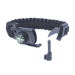 Pulseira Paracord Gac Sobrevivência Bússola Pederneira Ntk Cor: Preto Ao longo do tempo, a ideia da pulseira teve alguns incrementos e melhorias, como uma bússola auxiliará na orientação em navegação, engate em fechos de nylon e apito de emergência - que apesar de parecer algo desnecessário pode significar a sobrevivência quando se está cansado demais até para assobiar, e o principal, a pederneira.