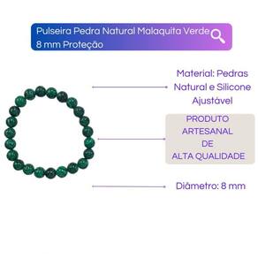Pulseira Pedra Natural Malaquita Verde 8 mm Proteção Pulseira Pedra Natural Malaquita Verde 8 mm Proteção A Pulseira Pedra Natural Malaquita da Bialluz possui pedras de alta qualidade feitas de forma artesanal com muito carinho. Com tamanho único, mas muito versátil por conta do silicone, é perfeita para qualquer pessoa. Cheia de boas energias e carregada de fé nossa pulseira emanará muita paz em sua vida Enviamos a sua pulseira em até 24 horas após a confirmação de pagamento Dimensões aproximadas:Tamanho das pedras: 8 mm Por ser uma peça feita artesanalmente podem ocorrer pequenas variações nas cores ou tamanhos. Caso tenha alguma dúvida nos mande mensagem que respondemos rapidinho para te ajudar da melhor forma possível Marca: Meta Atacado