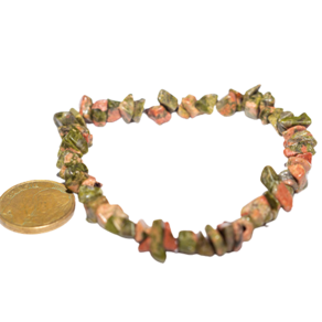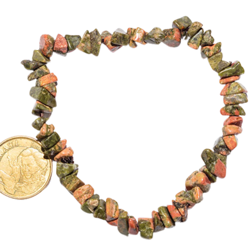 Pulseira Cascalhos de Pedrinhas roladas de Unakita, ótimo Brilho, pedra genuina, mineral autêntico de garimpo, a montagem com furos ao meio da pedra unidas por fio silicone o que possibilta varias medidas de usuarios, além de fácil reparo ou ajuste, basta trocar o silicone e diminuir alguma pedra para uso infantil. Presente Ideal para todas as idades, ou mimo para seu próprio uso.