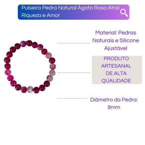 Pulseira Pedras Naturais Amuleto - Escolha a Cor da Pedra Cor: Pedra Ágata Rosa Pulseira Pedras Naturais Amuleto - Escolha a Cor da Pedra