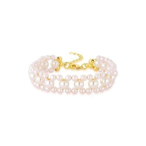 Pulseira Perolas dupla Banhada a Ouro 18k 18cm -