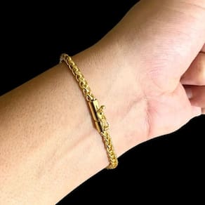 Pulseira 5mm Banhado a Ouro 18K Luxo Detalhes do Produto: Material: ligas metálicas de alta qualidade, especialmente tratadas para fixação e absorção do ouro, com acabamento em verniz protetor. Aparência: visual idêntico ao ouro maciço. Produção: artesanal, com atenção meticulosa aos detalhes. Banho: 10 camadas espessas de ouro 18k, finalizadas com verniz antialérgico . Elos: soldados varia conforme o modelo . Pedras: zircônias brilhantes cravejadas quando aplicável . Tamanhos Disponíveis: Cordões Masculinos: 70cm padrão e 60cm sob consulta/Pedido Via Chat . Cordões Femininos: 50cm padrão e 45cm sob consulta/Pedido Via Chat . Pulseiras: 21cm padrão ; tamanhos de 18cm a 23cm sob consulta/Pedido Via Chat. Pingentes: conforme imagens; consulte para mais detalhes via chat. Espessuras Recomendadas para Cordões / Pingentes: P: 1mm a 4mm M: 4mm a 8mm G: 6mm a 13mm Gg: 12mm a 18mm Incluso na Compra: Saquinho de organza para armazenamento seguro. Caixa elegante, perfeita para presente. Cupom de desconto para a próxima compra. Flyer com outros produtos da coleção. Carta de agradecimento personalizada. Adesivo da marca ToJoia18k. Informações Adicionais: : 6 meses termos acompanham o produto . Devolução: 7 dias para devolução sem questionamentos. Envio: despacho em até 24 horas úteis após confirmação do pagamento. Cuidados com a Peça: Evite contato com produtos químicos; aguarde o perfume secar antes de usar. Evite contato com shampoo, condicionadores e suor excessivo. Armazene em local seco, preferencialmente no saquinho de organza fornecido. Uso no mar e piscina é permitido; lave com água corrente e sabão neutro após. Por que Escolher a ToJoia18k Semi-joias luxuosas que combinam estilo, qualidade e sofisticação. Banho espesso de ouro 18k, garantindo brilho duradouro e acabamento impecável. Design exclusivo e produção artesanal, perfeitos para qualquer ocasião. Materiais premium que asseguram durabilidade. Ao escolher uma semi-joia ToJoia18k, você investe em qualidade, elegância e uma experiência única. Aguardamos sua compra Observação: pode ocorrer variação no fecho raramente . Imagens reais, sem edição. Qualquer dúvida, estamos à disposição para esclarecimentos. Marca: Não Informado