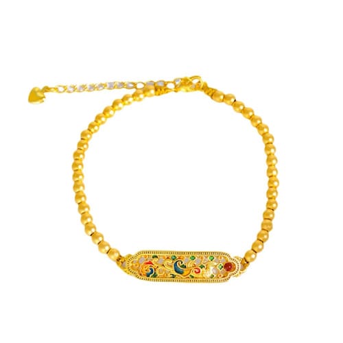Material: Design elegante do símbolo da fênix Gold Place — apresenta um motivo de fênix embelezado com esmalte, representando graça, renascimento e poderosa energia feminina na cultura tradicional. Artesanato em esmalte azul queimado — apresenta detalhes intrincados em estilo cloisonné em tons vibrantes de azul, vermelho e verde, adicionando uma textura visual rica e um apelo histórico. Miçangas banhadas a ouro polido — Delicadas contas banhadas a ouro amarradas em simetria para uma aparência luxuosa, mantendo o conforto leve. Ajuste de corrente ajustável — Inclui uma corrente de extensão dourada para caber em uma variedade de tamanhos de pulso, facilitando o uso em roupas formais e casuais. Fusão de tradição e moda — Ideal para mulheres que buscam um acessório refinado inspirado na cultura chinesa com um toque moderno de estilo nacional.