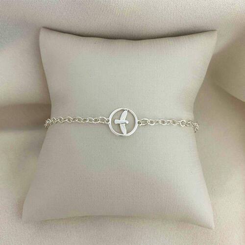 Pulseira Pingente Circular Passáro em Prata 925