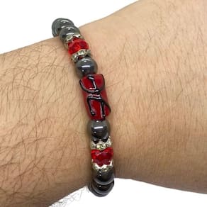 As Pulseiras Pomba Gira Firma Hematita da Bialluz tem um detalhe especial e repleto de luz que é a Firma representando o seu Orixá, confeccionada em vidro e tem um brilho maravilhoso e super resistente. Possui lindas pedras hematitas de alta qualidade feitos de forma artesanal com muito carinho. Com tamanho único, mas muito versátil por conta do silicone, é perfeita para qualquer pessoa. Cheia de boas energias e carregada de fé nossa pulseira emanará muita paz em sua vida