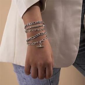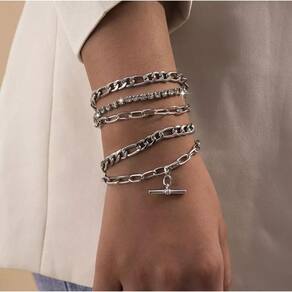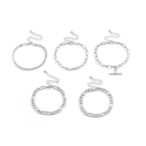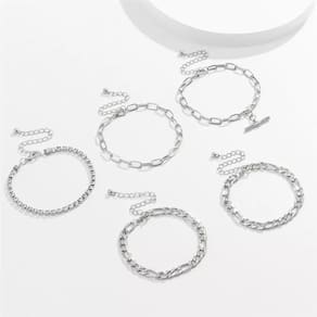 Conteúdo da embalagem: 05 pulseiras prateadas liga de zinco