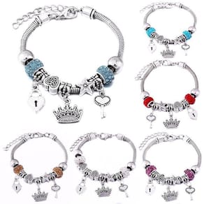 Descrição:Estilo: moda joias charme pulseiraMaterial: liga metálica+ vidro + prata chapeadoTamanho: 65mmO pacote inclui:1 x pulseira Cuidado com suas semijoias:1 - evite o contato das peças com produtos químicos e de limpeza em geral, é indicado que você retire sua peça ao manusear estes produtos. Principais vilões: cremes, shampoo, detergentes, perfumes.2 - cuidados com perfume o perfume se for aplicado diretamente na peça, pode acabar com o tempo danificando a semijoia por conta da presença do álcool em sua composição. O mais indicado é aplicar o produto e só depois de alguns minutos quando o perfume secar colocar sua semijoia favorita.3 - limpe com sabão neutro e água como produtos de limpeza podem prejudicar a peça, o ideal é que ela seja lavada com sabão neutro e água pura. Este tipo de limpeza é aconselhado para o cotidiano. E funciona bem na eliminação de gorduras. Não esqueça de secar bem.4 - lustre com uma flanela. Imagens meramente ilustrativas A vida útil da peça e proporcional aos seus cuidados