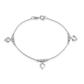 Pulseira Prateada Lisa Com 3 Pingentes De Coração