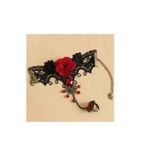 Pulseira Preta Tecido Anel Punk Rosa Vermelha Pedra Diâmetro: 8 cm Pulseira anle elegante rubro negra com pedra metal e tecido. Marca: Não Informado Ean: 7899238387747