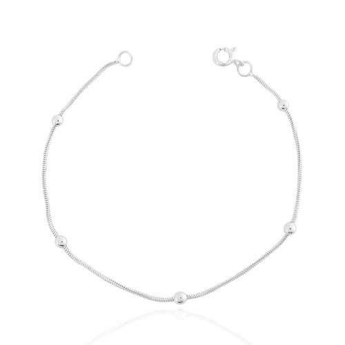 Pulseira Rabo De Rato Com Bolinhas Banhada a Prata
