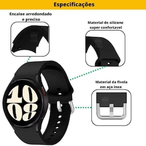 Variedade: As pulseiras de silicone estão disponíveis em uma ampla variedade de cores, permitindo que você personalize o visual do seu galaxy watch6 de acordo com seu estilo pessoal. Você pode escolher entre cores vibrantes ou neutras.