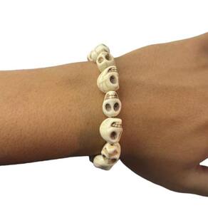 Pulseira Resina Caveira Crânio Cor Marfin 8 mm
