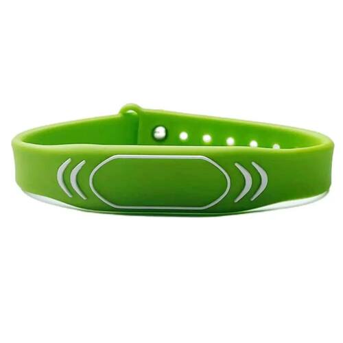 Pulseira de silicone, com chip de memória interno RFID 13.56Mhz (SmartCard), com regulagem, para uso em sistemas de controle de acesso e outros sistemas diversos.