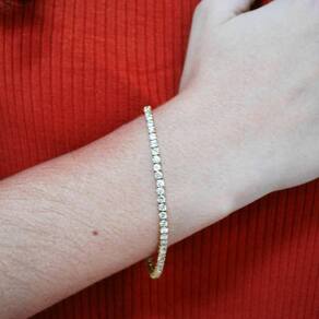 Essa pulseira é o acessório perfeito para pessoas que apreciam o requinte e desejam brilhar intensamente em qualquer ocasião. seu 20cm de acabamento é impecável e a qualidade dos materiais utilizados nessa pulseira é uma joia duradoura, capaz de encantar gerações.