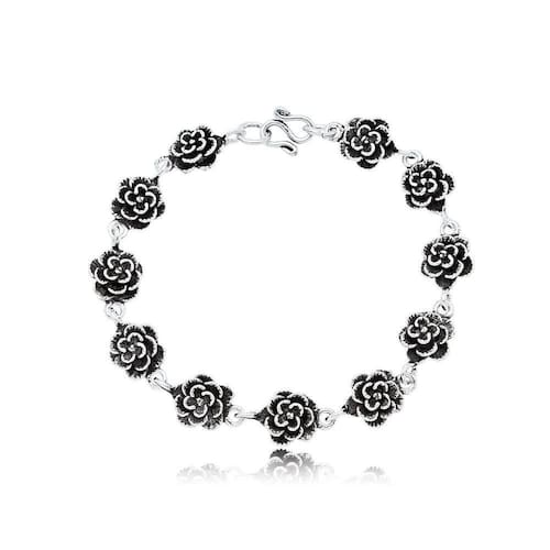 Pulseira Rosas Prata De Bali 925 Pulseira Rosas Prata de Bali 925 18cm - Esta linda pulseira feminina é feita em Prata de Bali 925 e apresenta uma sequência de pequenas rosas esculpidas, cada uma com 0,9 cm de largura. Com um design delicado e minucioso, essa peça traz um toque de romantismo e elegância, ideal para mulheres que buscam um acessório versátil e sofisticado.