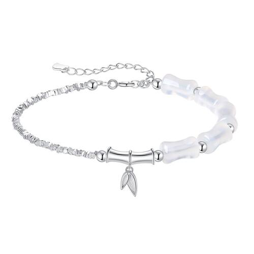Tamanho: diâmetro do talão 6x10mm, perímetro 15+5cm Peso: 6g Material: prata 9251. Material de prata esterlina S925 Feito de prata S925 premium com excelente retenção de cor e propriedades anti-manchas, garantindo brilho e durabilidade duradouros. 2. Combinação Bamboo and Shard Silver Bead Combina miçangas lisas em forma de bambu (6x10mm) com elementos de fragmentos de prata intrincadamente facetados para adicionar profundidade, brilho e um toque contemporâneo. 3. Elegante toque de duas folhas Um delicado segmento de bambu prateado com pingente suspenso de duas folhas aprimora o tema oriental e o toque artístico da pulseira. 4. Ajustável para a maioria dos tamanhos de pulso. Vem com uma base de 15 cm de comprimento e uma corrente de extensão de 5 cm, oferecendo um ajuste flexível que acomoda a maioria dos tamanhos de pulso com facilidade. 5. Ideal para o estilo outono/inverno Perfeita para camadas sazonais, esta pulseira reflete a nova elegância chinesa e combina com a estética de moda minimalista e formal.