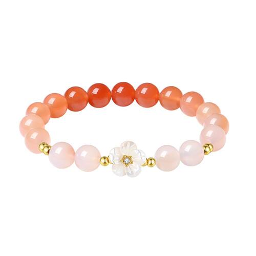 Tamanho: Diâmetro do cordão 8 mm, 18 peças Peso: 18 g Material: ágata Grânulos de ágata vermelha natural — Feitos com 18 contas de ágata vermelha de 8 mm de alta qualidade em um tom suave de gradiente, oferecendo uma aparência quente e elegante adequada para uso diário. Peça central em flor de cerejeira — apresenta um delicado pingente de flor de cerejeira em madrepérola que adiciona um toque refinado, simbolizando feminilidade e renovação. Design de estilo chinês — Inspirada na estética clássica chinesa, a pulseira combina beleza cultural com elegância moderna, perfeita para quem ama elementos tradicionais. Detalhes em prata esterlina S925 — Feito com detalhes de prata S925 premium que resistem a manchas e garantem um uso duradouro. Ajuste elástico e confortável — Construído com um cordão elástico durável que se encaixa confortavelmente na maioria dos tamanhos de pulso, tornando-o ideal para uso casual e espiritual.