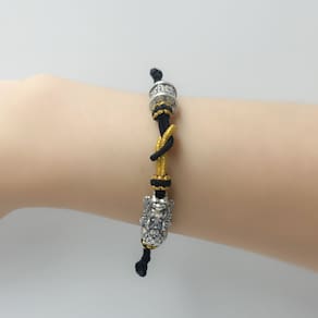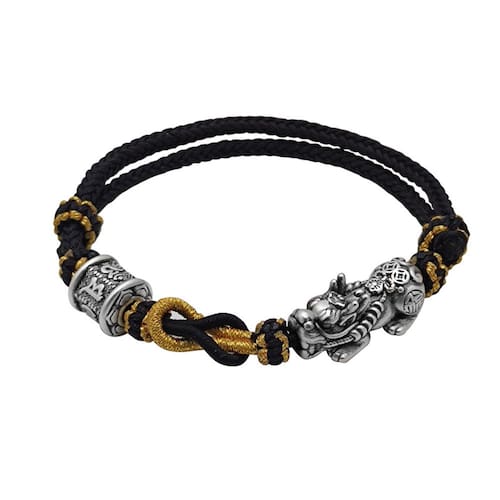 Tamanho: Brave Troops 22,7 x 11,3 mm Peso: 6 g Material: S999 SilverPixius Wealth Symbol — Apresenta um pingente Pixius prateado S999 finamente feito (22,7 x 11,3 mm), conhecido na cultura chinesa como uma criatura poderosa que atrai riqueza e afasta o mal. Cordão durável feito à mão — trançado com fios pretos e dourados de alta qualidade em um estilo de nó duplo, oferecendo um ajuste seguro e ajustável para a maioria dos tamanhos de pulso. Prata pura premium — Feita de prata esterlina 999, hipoalergênica e resistente a manchas, ideal para uso diário ou espiritual. O tradicional encontra o moderno — combina o simbolismo tradicional do Feng Shui com o minimalismo contemporâneo, adequado para roupas casuais e culturais. Ótimo para proteção diária — Projetado cuidadosamente para pessoas espirituais ou colecionadores de joias significativas e feitas à mão no estilo oriental.