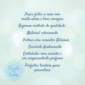 As pedras e/ou sementes são naturais Sim, só trabalhamos com sementes e pedras naturais, selecionadas e de qualidade.