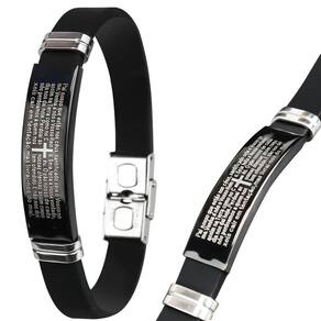 "Pulseira Masculina Preto com Oração Pai Nosso Ajustável 21cm"Adquira já esta pulseira masculina com oração do Pai Nosso, perfeita para adicionar um toque especial ao seu estilo. Ajustável e confortável, esta pulseira se adapta a diversos tamanhos de pulso, garantindo versatilidade para uso diário ou ocasiões especiais.Com 21cm de comprimento e 12mm de largura, esta pulseira é mais do que um acessório, é uma expressão de estilo com um toque pessoal. Presenteie alguém especial com este acessório elegante e único, que combina significado e estilo de forma única.Adquira agora e adicione um toque especial ao visual, dando um presente que se ajusta ao gosto e estilo de quem você ama.