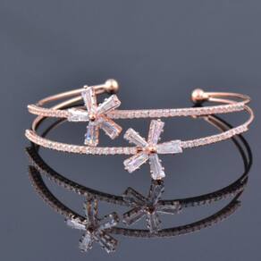 Pulseira Slave feita de liga de cobre e flores e miçangas de cristal\ nCor: ouro rosa\ nTamanho: ajustável