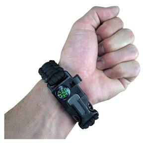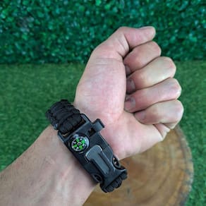 Pulseira de Sobrevivência e ideal Para quem gosta de camping, caminhadas, montanhismo. Seu Cabo Paracord de 3,8 M suporta ate 550 libras, cabo é acondicionado na fivela formando uma pulseira em malha compacta e fácil de transportar